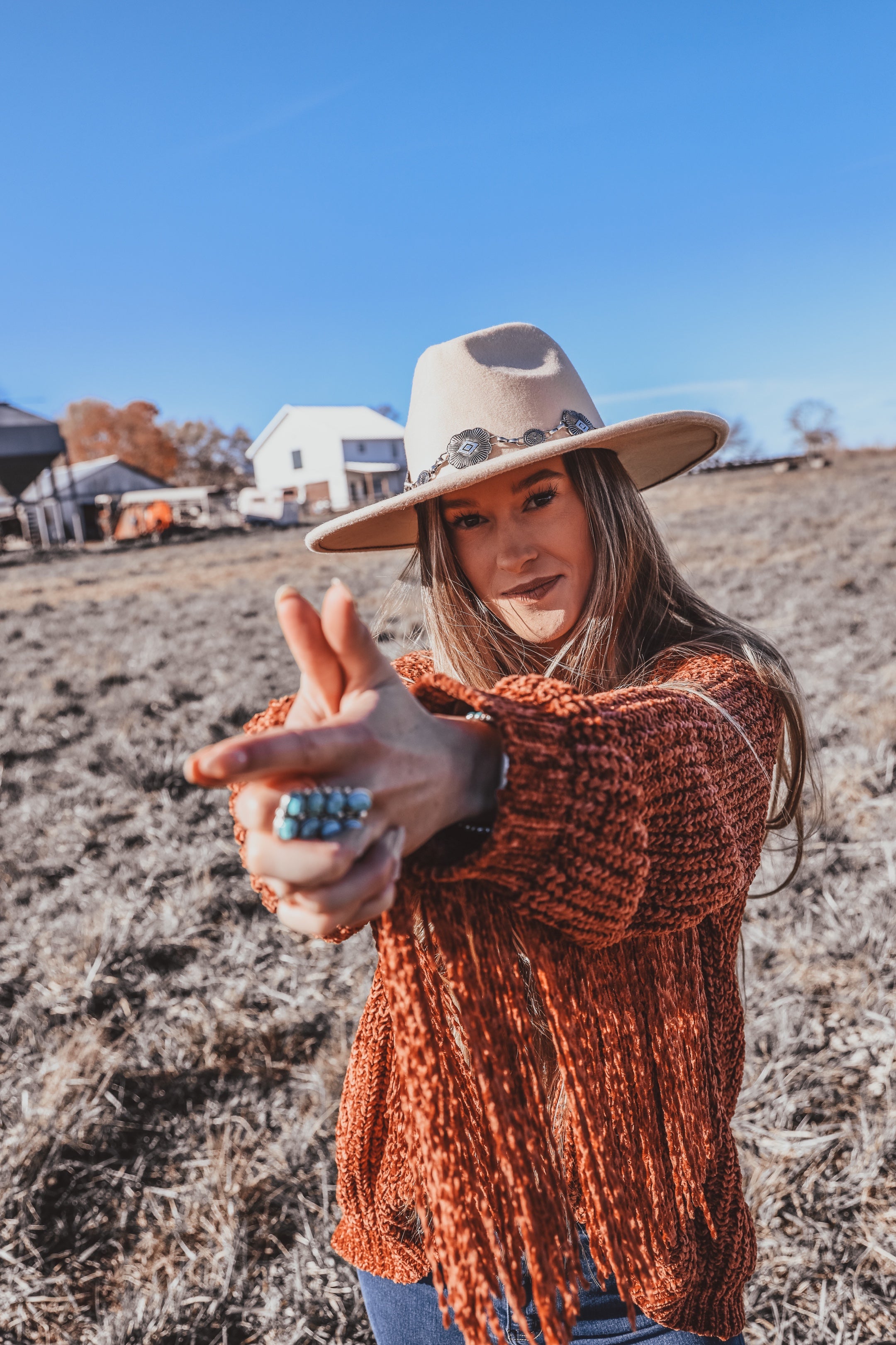 Concho Chain Wide Brim Hat