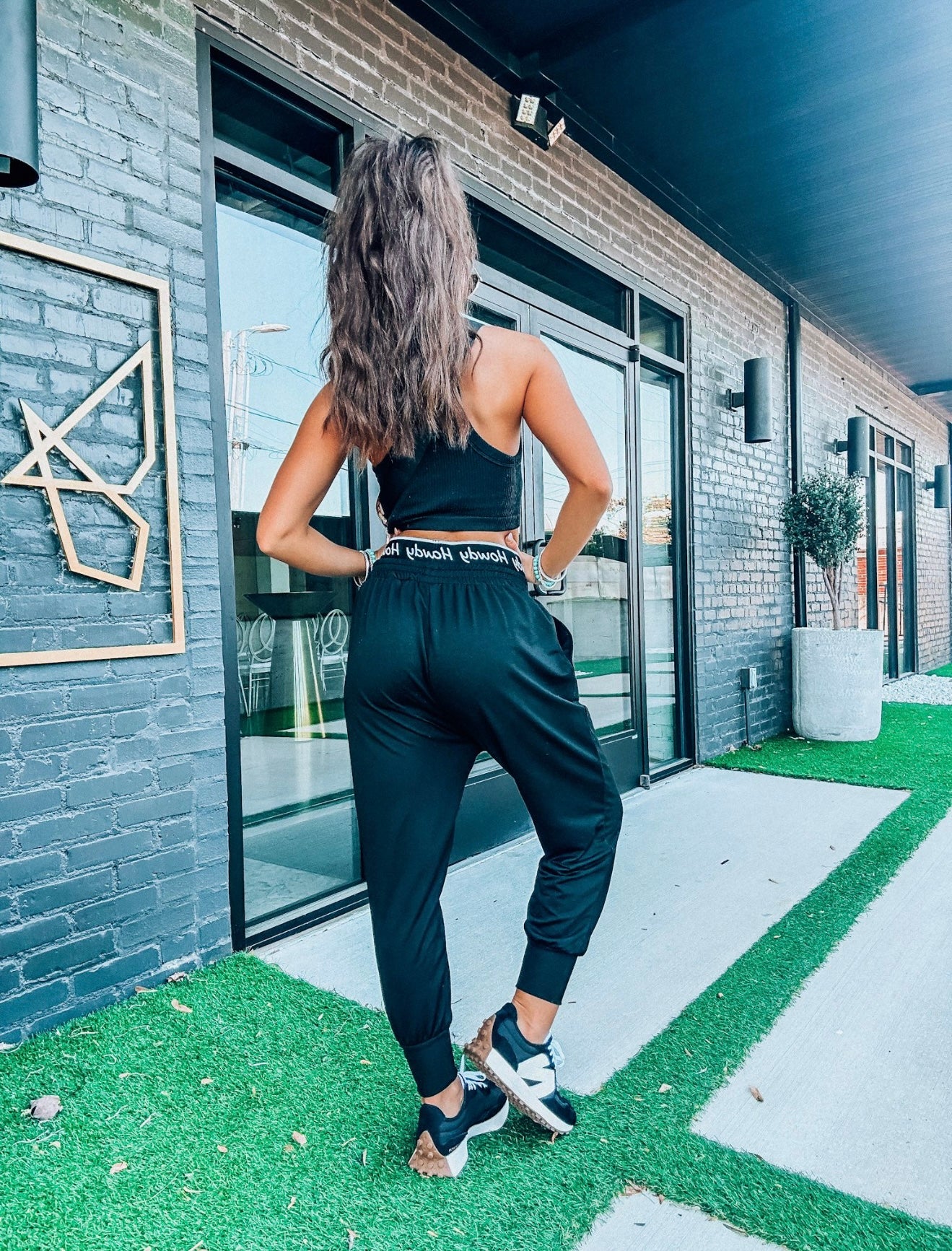 Super soft fleece joggers with a stretchy elastic "HOWDY" waistband! These will be your new favorite go-to joggers any time you want to feel comfy