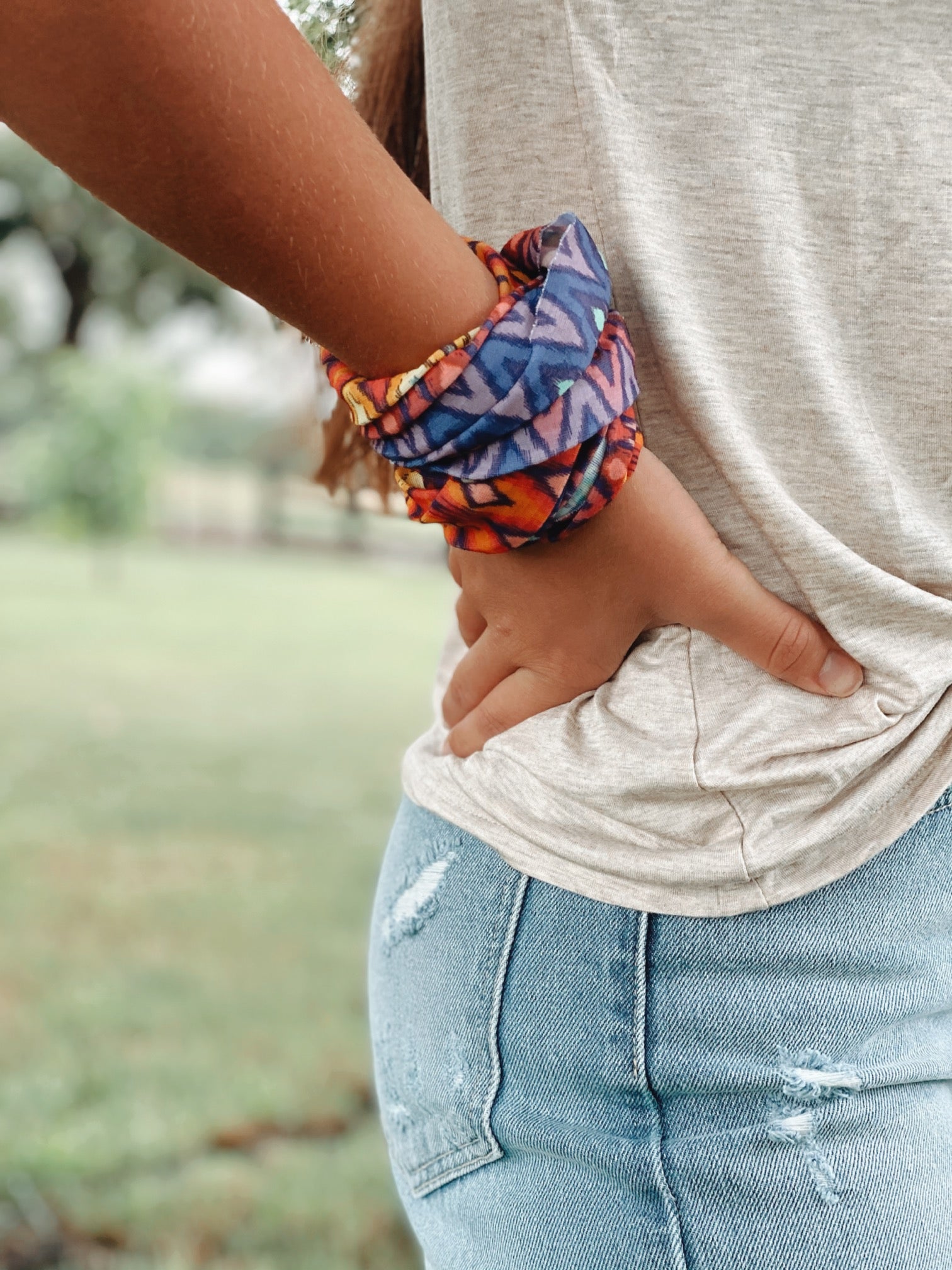 Payment PlansThese stretchy wraps have a chevron pattern, and multiple uses like ponytail holders, headbands, wear as gaiters or handkerchiefs around neck, ankle bracelets and so many more! You'll love how they are lightweight, soft and extremely stretchy while holding in place. Stock up on all of our patterns so you don't find yourself somewhere without one!